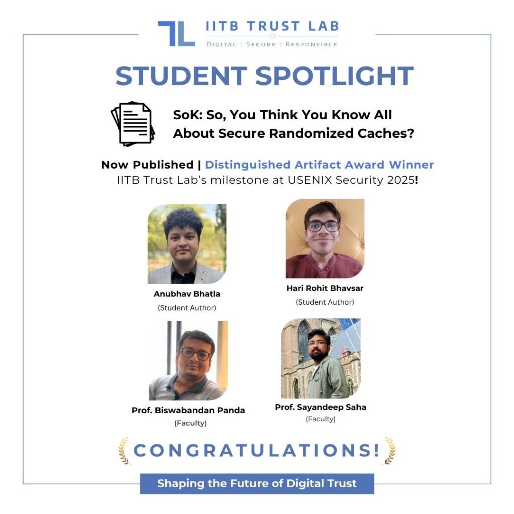 Congratulations to the authors — Anubhav Bhatla, Hari Rohit Bhavsar, Prof. Sayandeep Saha, and Prof. Biswabandan Panda— on this well-deserved recognition!